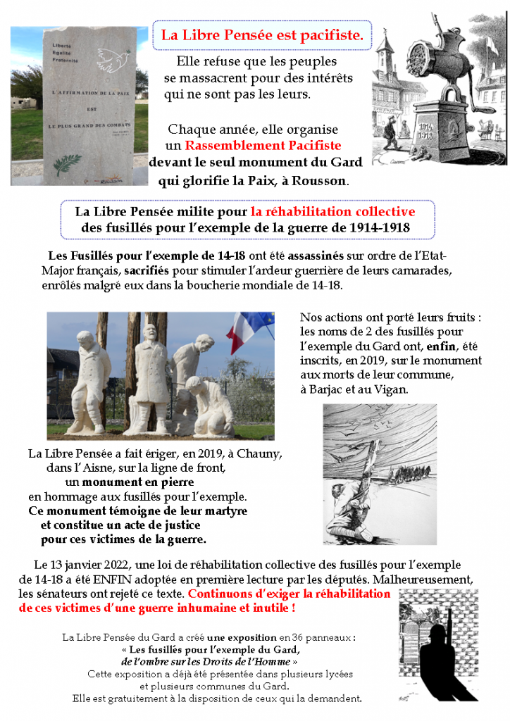 Voir la déclaration à la préfecture du Gard de la Libre Pensée du Gard en 1947