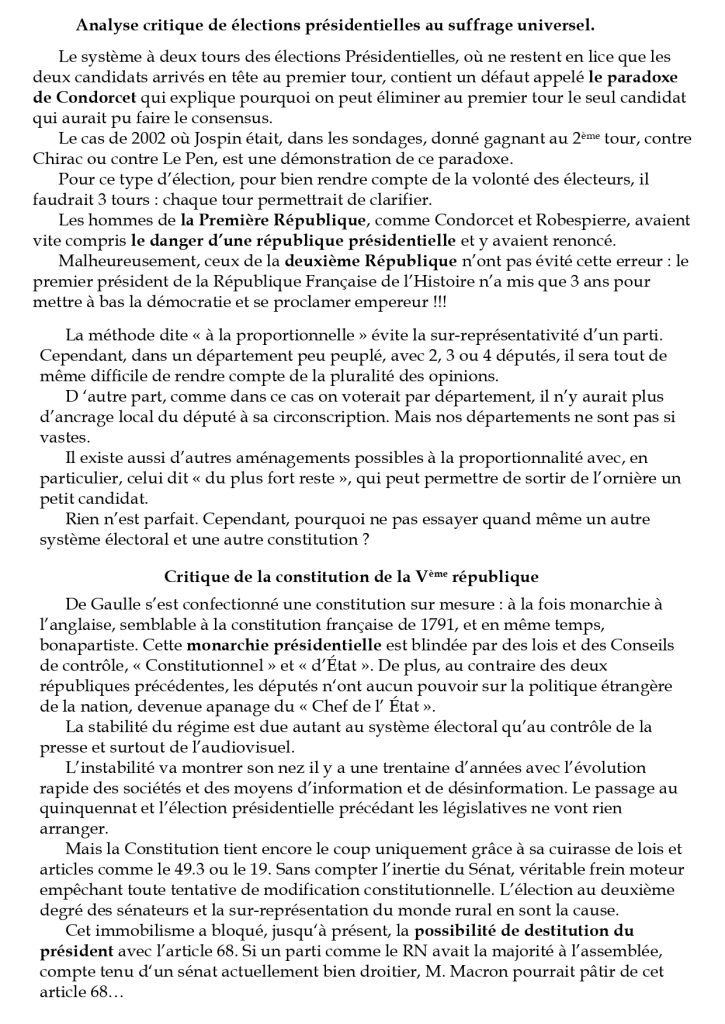 Mathématique électorale… Par Stenka Razine