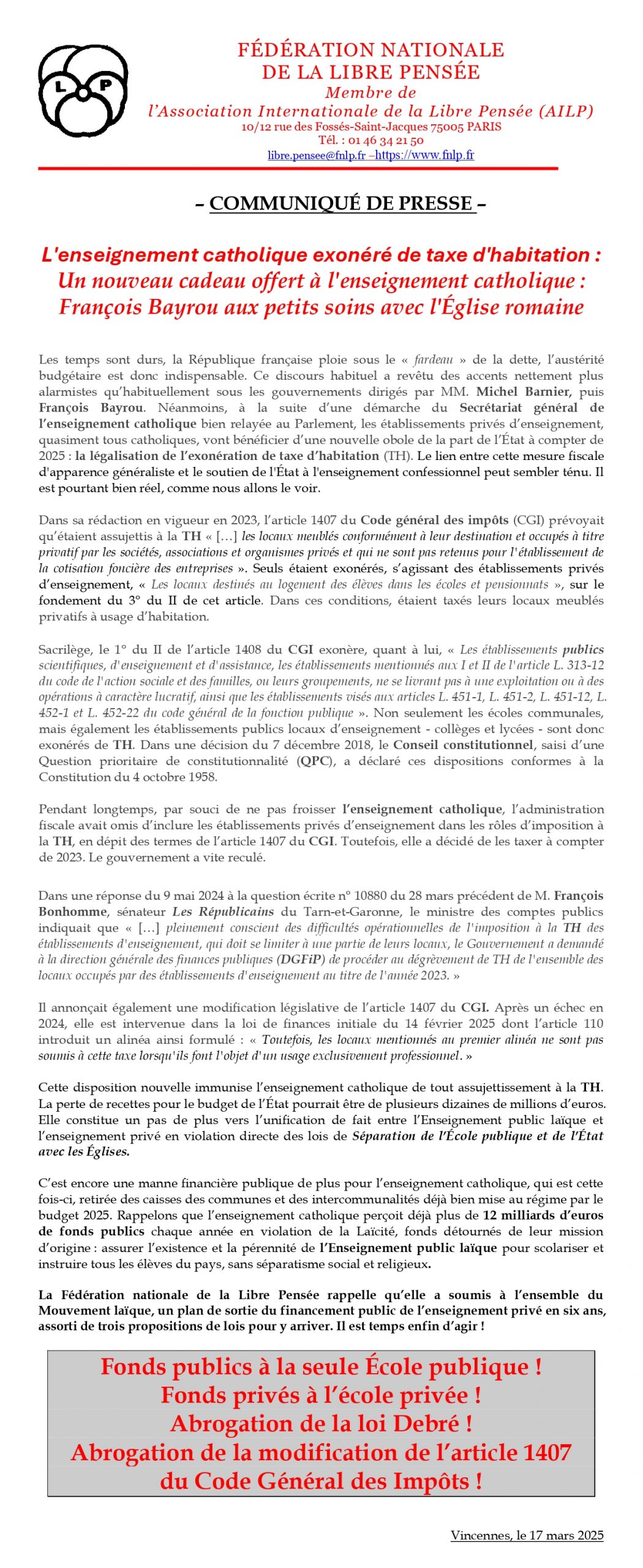 Finie la taxe d’habitation, pour l’enseignement catholique ! 19 mars 2025 par Chris Partager sur FacebookTweet